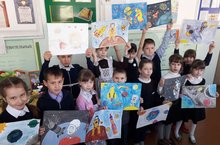 В рамках недели начальных классов учащиеся 1-4 классов участвовали в творческом конкурсе рисунков ко Дню космонавтики..