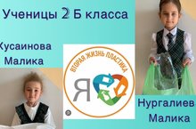 Под девизом "Пластику вторую жизнь" в экологической акции участвуют учащиеся 1 класса Сафиуллина Ралина и Мухутдинов Амир.
