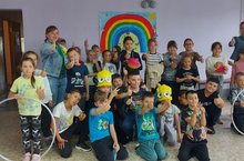Хоть и за окошком погода сегодня хмурая -детишкам в пришкольном лагере очень весело. Ребятки поиграли в игру "Радуга чудес", показали свои грамматические знания, потому что сегодня День русского языка и День рождения А. С. Пушкина.