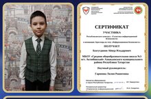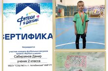 2 нче сыйныф укучысы Сабирҗанов Данир "Иң яхшы футбол рәсеме"конкурсында катнашты. Конкурс «Мәктәптә Футбол» Бөтенроссия проекты кысаларында Россия футбол берлеге тарафыннан гамәлгә куелды.