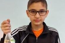 Ученик 2 класса Сабирзянов Данир участвует в сборе отработанных батареек.