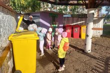 "Яшел калкан" проектын тормышка ашыру кысаларында балаларны интерактив такта ярдәмендә чүп-чарны сортларга өйрәтәбез.