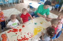 Балаларны кул белән бастыру техникасы белән таныштыруны дәвам итәбез. Кулларыбызга һәм бармакларыбызга буяулар ясарга, чәчәк яфракларының эзләрен ясарга өйрәтәбез. Төсләрне кабул итүне үстерәбез. Яшь рәссамнарга 1,5 яшьтән 3 яшькә кадәр.