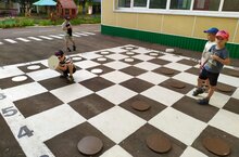 В это летнее время, как это здорово, что в нашем детском саду появилась «шашечная доска» на асфальте. Площадка привлекает детей: малыши просто прыгают по клеткам, ну а те, кто постарше – играют в шашки! Дети устраивают шашечные турниры, благодаря которым, дети учатся принимать коллективные решения, а также лучше осваивают технику игры.