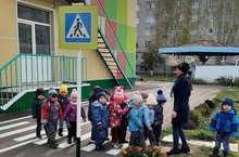 Сегодня педагог Ахметшина Л, Р., с детьми младшей группы на прогулке провела беседу о правилах дорожного движения, знакомила детей с элементами дороги; с правилом движения по обочине дороги; закрепляла знания о знакомых правилах дорожного движения. Также она провела игру-занятие «Как ребята научили Красную шапочку правильно вести себя на улице», где закрепила знания у детей о ПДД и создала радостное настроение.