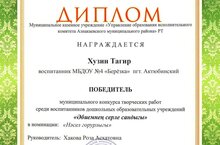 Воспитанник 2-ой младшей группы Хузин Тагир стал ПОБЕДИТЕЛЕМ в муниципальном конкурсе творческих работ среди воспитанников дошкольных образовательных учреждений в номинации "Нәсел горрурыгы". Поздравляем нашего победителя и желаем творческих успехов! Руководитель: Хакова Роза Асхатовна