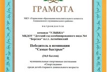 В детском саду №1 «Колокольчик» г. Азнакаево прошел спортивный праздник «Путешествие в страну Спортландию» среди детей старшего дошкольного возраста, целью мероприятия было привлечение детей к здоровому образу жизни посредством подвижных игр. Наши воспитанники детского сада команда «Улыбка» приняли активное участие в этом спортивном состязании. На этом спортивном празднике, дети рассказывали стихи о спорте, выполняли музыкальную разминку «Мы ногами, мы руками». В зале царили смех, шум и веселье. Ребята играли в игры – эстафеты. Соревнования стали настоящим праздником спорта, здоровья и молодости! Поняли: чтобы завоевать победу – мало быть просто физически сильным. Необходимо при этом обладать достаточной целеустремленностью, силой воли, быть ловкими и находчивыми. Праздник получился захватывающим и забавным, оставил массу положительных эмоций и впечатлений. Наша спортивная команда «Улыбка» стала победителем в номинации «Самые быстрые». ПОЗДРАВЛЯЕМ!!!