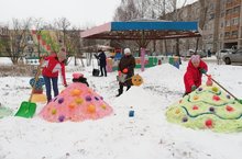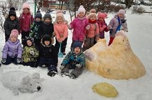 Снежная «Курочка Ряба» появилась на участке средней группы усилиями родителей.