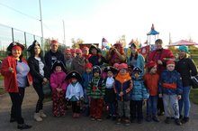 Осень продолжает нас радовать солнечной и теплой погодой. И мы спешим поймать последние теплые деньки. Сегодня необычная вечерняя прогулка. Мы вместе с родителями и детьми отправились на поиски сокровищ старого пирата Билла. Ребятам очень нравится костюмированные вечеринки, перевоплощение в героев из мультфильмов и сказок. Взрослые и дети удивили нас забавными костюмами, от этого долгожданная встреча у ворот парка становилась загадочнее и увлекательнее.