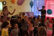 Вот и в нашем детском саду первая летняя неделя началась с забавного развлечения: «Праздник воздушных шаров». Все воспитанники вместе с персонажем «Ириской» получили огромный заряд бодрости, хорошего настроения и много позитивных эмоций, приняли активное участие в играх и танцах.