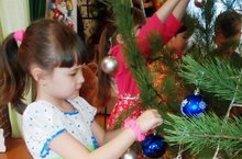 В нашем детском саду есть традиция: дети подготовительной группы украшают новогоднюю елочку к празднику. Вот и в это году мы продолжили эту традицию. Дети с нетерпением ждали этого дня и с большим удовольствием вешали игрушки на зеленую красавицу. Теперь елочка готова принимать гостей на праздник!