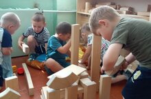 Наши гости предложили детям совершить маршрут по карте с определёнными заданиями. Ребята изучив карту тут же отправились в путь. На каждой станции их ждали интересные задания, а после каждого выполненного задания наши дети получали по одному лепестку ромашки. На станции «Строительной» ребятам пришлось потрудиться, построить дом из подручного материала строительство дома очень ответственная и увлекательная работа. Но наши строители с этим заданием тоже справились и у них получились прекрасные дома. Пройдя по карте весь маршрут от начала до конца, получив в награду белые лепестки, дети собрали цветок - символ праздника ромашка. Из получившихся цветов создали праздничную композицию. Вот такая дружная семья в нашем детском саду. -