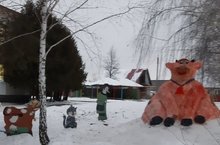 Если б не было ни песен, ни чудес..При входе в наш детский сад ребятишек встречают герои из сказочной деревни Простоквашино: почтальон Печкин, кот Матроскин, бычок Гаврюша- символ наступающего 2021 года