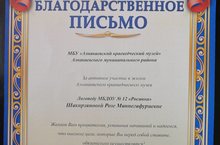 Благодарственное письмо МБУ "Азнакаевский краеведческий музей Азнакаевского муниципального района" За активное участие в жизни Азнакаевского краеведческого музея. Учителю - логопеду Шакирзяновой Р.М. 16.04.2019