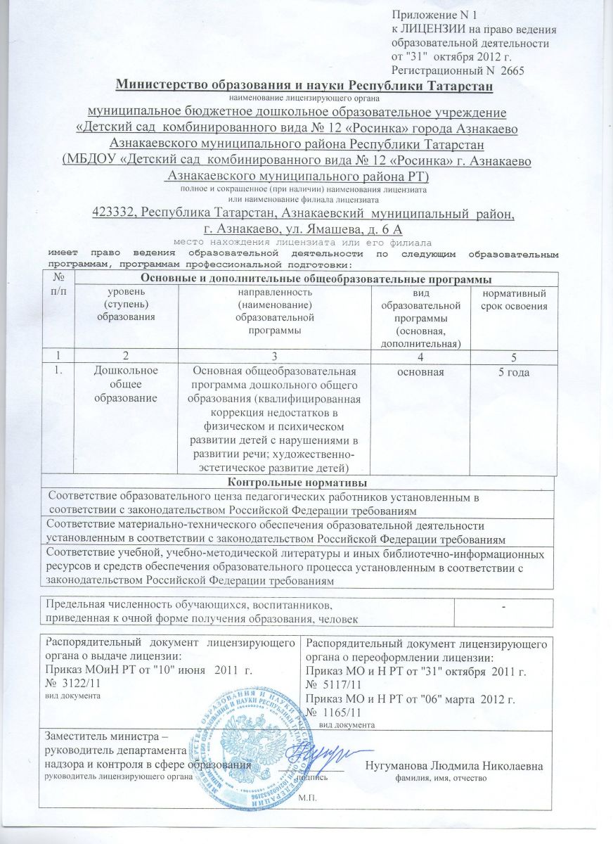 | Короткое название: | МБДОУ “Детский сад комбинированного вида № 12 «Росинка» г.Азнакаево Азнакаевского муниципального района РТ. |