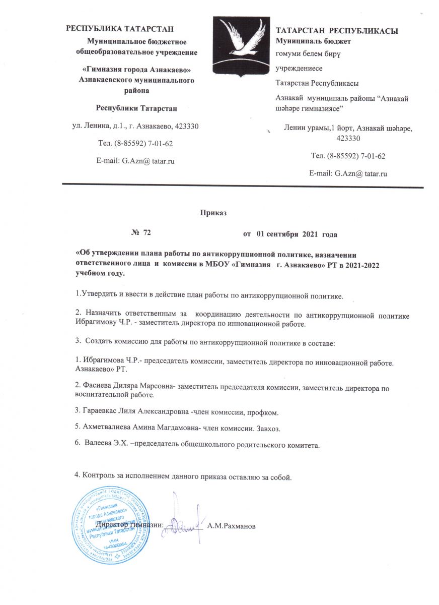 Муниципальное бюджетное общеобразовательное учреждение «Гимназия города Азнакаево" Азнакаевского муниципального района Республики Татарстан/Татарстан Республикасы Азнакай муниципаль районы муниципаль бюджет гомуми белем бирү учреждениесе «Азнакай шәhәре гимназиясе»