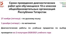 Сроки проведения диагностических работ для обучающихся 10 классов общеобразовательных организаций Республики Татарстан