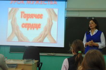 На уроке учитель обществознания Лиля Александровна познакомила учащихся с Почетной книгой «Горячее сердце -2016», которая включает в себя истории детей и молодежи в возрасте до 23 лет, проявивших неравнодушие и активную жизненную позицию, совершивших героические и мужественные поступки, бескорыстно пришедших на помощь людям, а также преодолевших трудные жизненные ситуации.
