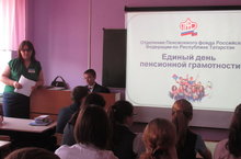 22 сентября для обучающихся 8-10 классов прошла информационная акция в рамках Единого дня пенсионной грамотности. Руководитель группы пенсионных прав застрахованных лиц Муртазина Айгуль Рустамовна выступила с презентацией "Пенсионное обеспечение в РФ" . Для более подробной информации с организацией работы структурных подразделений ПФР и его основных функций, предложила всем желающим буклеты и тематическую литературу.