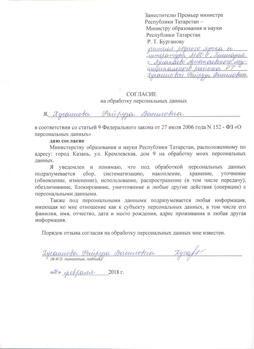Личное заявление на участие и письменное разрешение на обработку персональных данных Участника