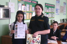 Награждение Каримовой Азалии, ученицы 7а класса поощрительным дипломом министерства лесного хозяйства РТ за активное участие в конкурсе рисунков «Мир заповедной природы»