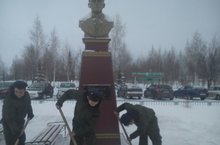 Юнармейцы нашей школы (рук.Сиразетдинов Р.Р.) приняли участие в марафоне добрых дел-очистили от снега памятники г.Азнакаево» -