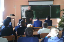 С целью профориентации перед учащимися старших классов выступил заместитель военного комиссара Юсупов Раушан Набиуллович. -