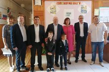 Вручение портфелей первоклассникам на торжественном открытии баскетбольной площадки школы №8 г.Азнакаево с участием первого заместителя строительства,архитектуры и жилищно-коммунального хозяйства Республики Татарстан Фролова А.М.
