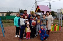 Педагоги нашей школы Лилия Миргаязовна, Лилия Нашатовна, Зульфия Мунировна на празднике двора п.Яна Юл проводили подвижные игры для детей.
