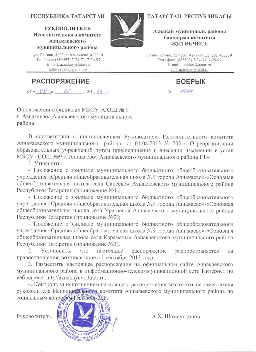 | Короткое название: | МБОУ "СОШ №9 г.Азнакаево"Азнакаевского муниципального района РТ |