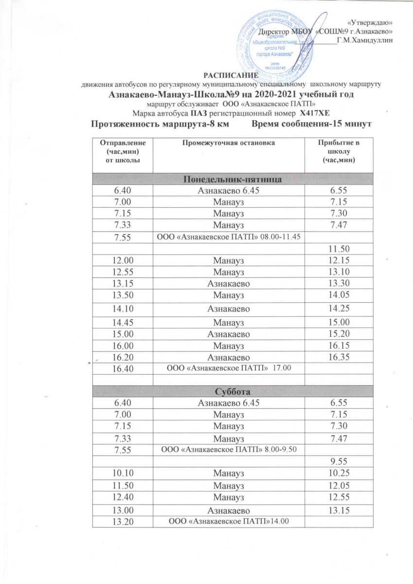 Маршрут Азнакаево-Манауз-Школа №9