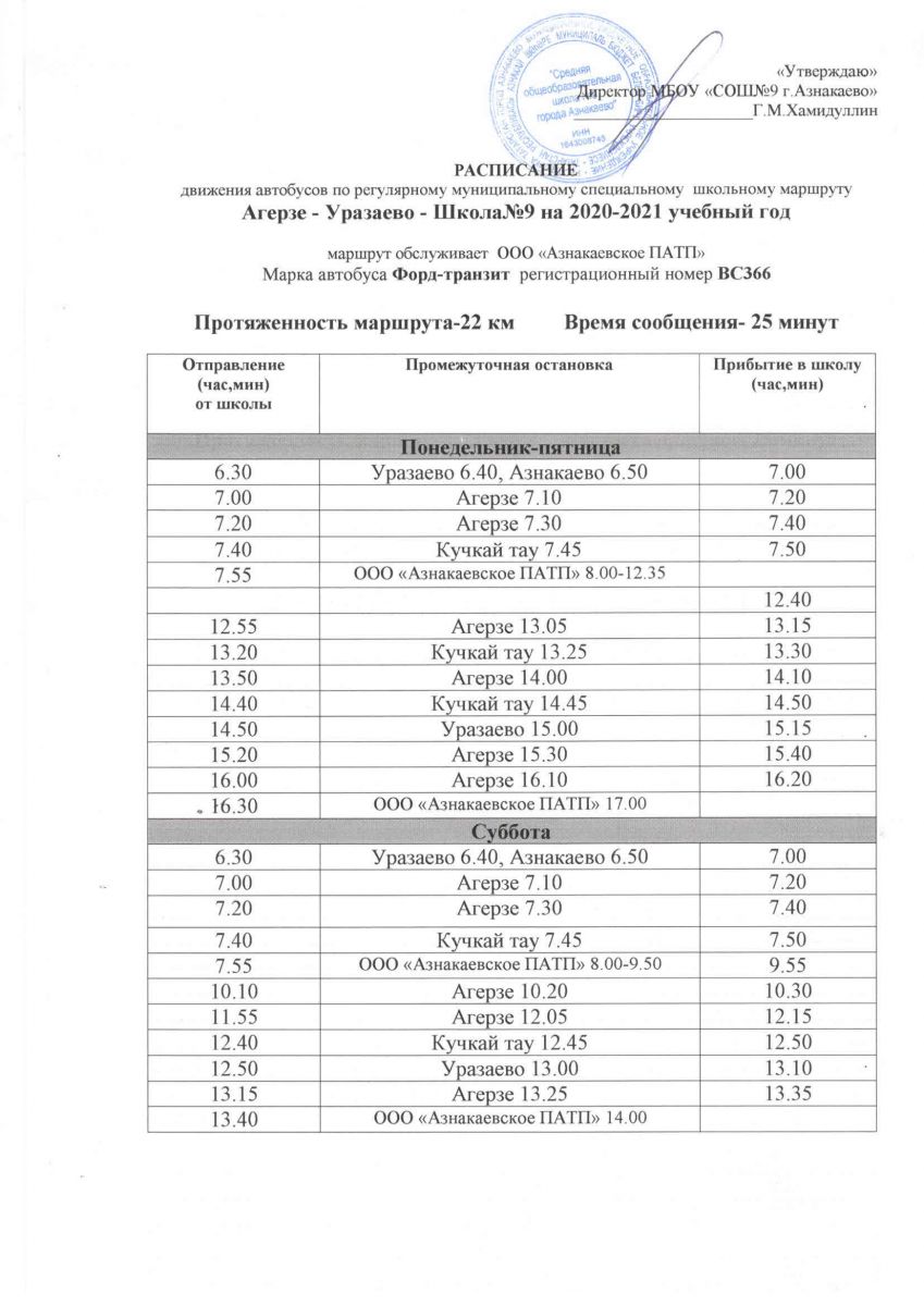 Маршрут Азнакаево-Уразаево-Агерзе-Школа №9