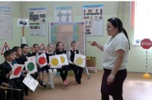Перед летними каникулами с учашимися 1а класса пилотной 1 школы г.Азнакаево был проведен классный час по правилам дорожного движения.Кл.руководитель Асанова М.Л.