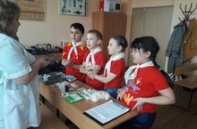 Отряд ЮИД 3А класса пилотной 1 школы г.Азнакаево принял участие на 1-2 станциях (ПДД и медицина) муниципального этапа республиканского конкурса "Безопасное колесо".