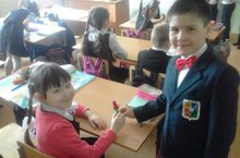 Татар теле дәресендә 3 нче сыйныф (рус группасы) укучылары әниләренә татарча 8нче март открыткалары ясадылар.