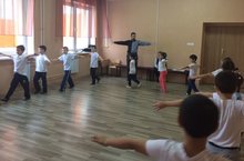 В рамках внеурочной деятельности в нашей школе с 1 по 7 классы проходят занятия по хореографии. Дети всем классом разучивают танцевальные движения.