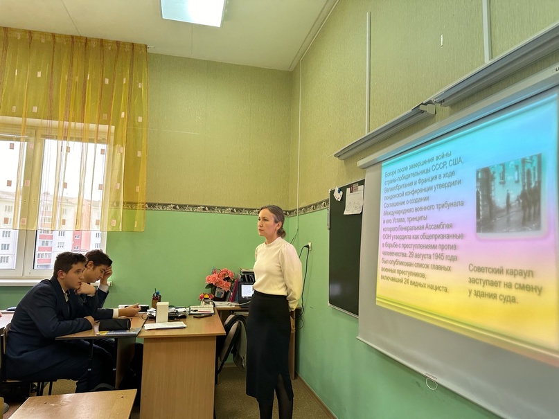 Сегодня учитель истории Ризванова И.А. провела тематический урок посвящённый Дню начала Нюрнбергского процесса./ Бүген тарих укытучысы Ризванова И.А. Нюрнберг процессы башлану көненә багышланган тематик дәрес уздырды. 20.11.2023