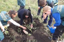 Участники кружка "Школьное лесничество" посадили саженцы маньчжурского ореха.