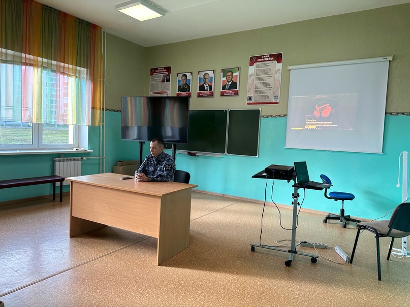 Была организованна встреча отряда Юнармии с представителями органов внутренних дел старшим лейтенантом полиции-инспектором вневедомственной охраны Росгвардии Валиевым Рустамом Салаватовичем.В рамках встречи Рустам Салаватович рассказал о героических поступках своих коллег, в том числе опасных для их жизни и здоровья, а также героях, погибших при исполнении служебных обязанностей.8 ноябрьдә Россия Федерациясе Эчке эшләр министрының 2017 елның 17 мартындагы 135 номерлы боерыгына ярашлы рәвештә Россия Федерациясе Эчке эшләр органнары хезмәткәрләренең хезмәт бурычларын үтәгәндә һәлак булганнарны искә алу көне билгеләп үтелә. Элек Россия Эчке эшләр министрлыгының 2011 елның 26 октябрендәге 1101 номерлы боерыгы нигезендә ул «Россия Федерациясе Эчке эшләр органнары хезмәткәрләренең һәм Россия Эчке эшләр Министрлыгы эчке гаскәрләре хәрбиләренең хезмәт бурычларын (хәрби хезмәт бурычларын) үтәгәндә һәлак булганнарны искә алу көне»дип аталган. Азнакай шәһәренең 1 нче урта гомуми белем бирү мәктәбендә тәрбия буенча директор киңәшчесе Р.Р. Нагайбекова "Ватанымны саклауда» дигән батырлык дәресе үткәрде. Юнармия отрядының эчке эшләр органнары вәкилләре белән очрашу, полициянең өлкән лейтенанты Росгвардиянең ведомстводан тыш саклау инспекторы Вәлиев Рөстәм Салават улы тарафыннан оештырылды.Очрашу кысаларында Рөстәм Салават улы хезмәттәшләренең батырлыклары, шул исәптән тормышлары һәм сәламәтлекләре өчен куркыныч , шулай ук хезмәт бурычларын үтәгәндә һәлак булган геройлары турында сөйләде.
