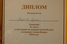 Победа в викторине по знаниям основ Ислама 29.03.2016