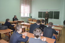 В рамках профориентационной работы в школе прошла встреча учащихся 9-11 классов с Юсуповым Р.Н.начальником МОП отделения, подполковником запаса на тему "Правила поступления в военные училища".