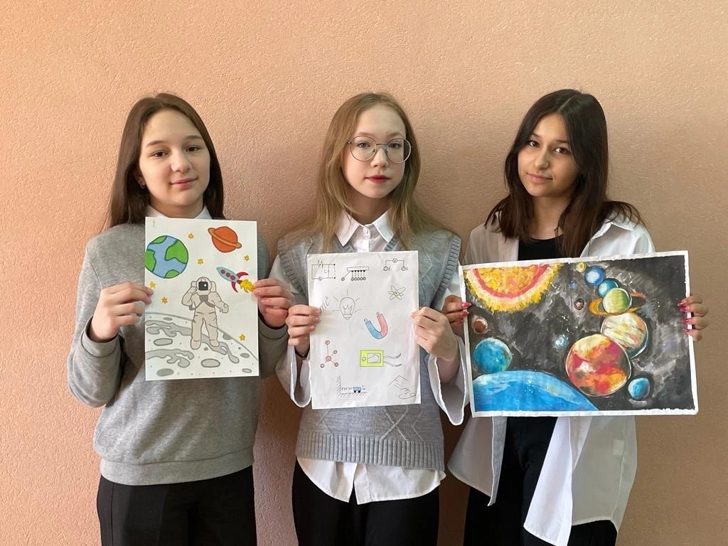 В рамках недели физики и асторономии в школе провели конкурс рисунков среди учаәихся школ, посвяәенный Дню Космонавтики.
