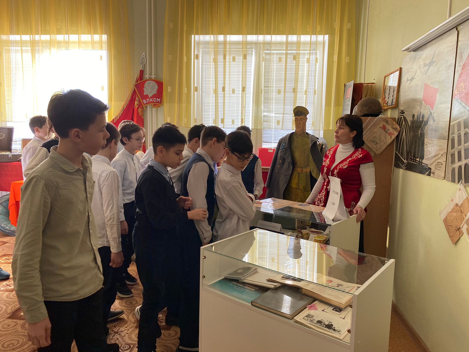 Туган якны ойрәну музеенда туган тел укытучысы Саргузина Г. Р һәм музыка укытучысы Туктарова З. Ш. 5Б сыйныфы укучылары белән "Истәлегем сина-буләгем" дип аталган батырлык дәресе уздырдылар. Чара Махсус Хэрби Операциядә һәлак булган 1 нче мәктәп укучыларын бер минут тынлык белән искә алу белән башланып китте. Чараның икенче өлешендә Кәримов Р, бабасы Кәримов Хәсән истәлегенә, уз куллары белән ясаган агач винтовка буләк итте. Винтовка МХО (СВО) почмагына урнаштырылды.