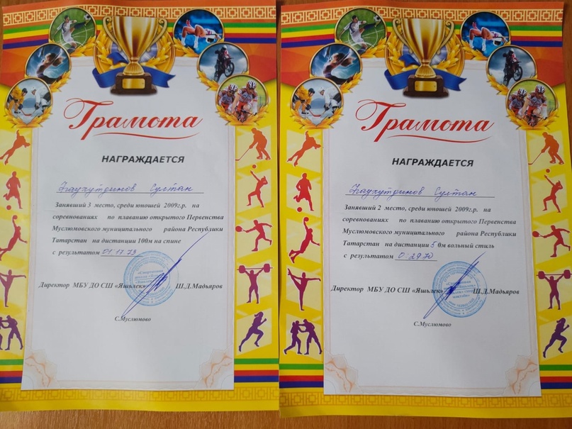 8а сыйныф укучысы Фәүхетдинов Солтан ТР Мөслим муниципаль районының ачык беренчелегендә йөзү буенча ярышларда катнашты. 50 метрлы дистанциядә ирекле стиль белән йөзүдә 2 нче урынны, 100 метрлы дистанциядә аркада йөзүдә 3 нче урынны алды. Котлыйбыз!
