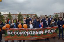 Родители, учителя и учащиеся школы - участники акции "Бессмертный полк".