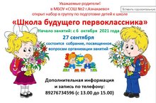 «Школа будущего первоклассника» 06.09.2021