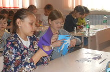 Клуб "Оригами" у нас пользуется огромным интересом. Сегодня ребята работали под лозунгом "Наш города в наших надежных руках"