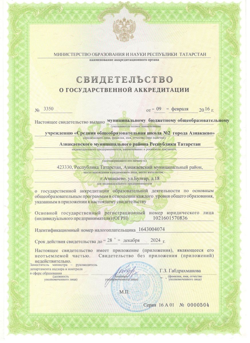 Муниципальное бюджетное общеобразовательное учреждение «Средняя общеобразовательная школа №2 города Азнакаево» Азнакаевского муниципального района РТ