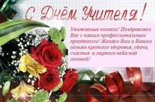 Администрация и коллектив школы поздравляет своих коллег с днем Учителя! Мы желаем Вам крепкого здоровья, семейного благополучия, счастья, удачи во всем и мирного неба над головой!