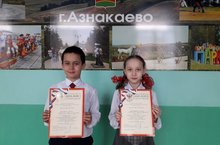 Члены юнармейского отряда "Пламя" школы 3 г.Азнакаево приняли участие в интеллектуальной игре в рамках празднования 100-летия ТАССР "Горжусь своей республикой" и заняли 3-е место среди школ города